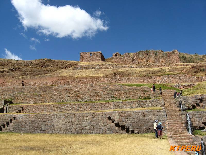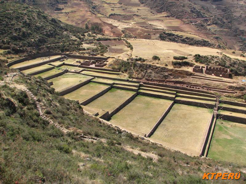 Se observa curiosamente la ausencia total de puertas y ventanas. En todo el parque suman 24 grupos arqueológicos entre ellos se encuentra RUMICOLCA que es una PORTADA INKA de fina factura de piedra andesita, esta portada en ÉPOCA INKA era un control forzoso, luego enrumbaremos a TIPÓN, desviaremos a la izquierda de la vía CUSCO-SICUANI a una distancia de 25 Km. respecto al Cusco, se halla este importante complejo arqueológico, donde apreciaremos enormes andenes, fuentes y caídas de agua ornamentales, es una hidráulica agrícola en su máxima expresión tecnológica; En este itinerario de excursión al sur también tendremos la oportunidad de observar las hermosas lagunas de URCOS, desde el mirador de CASIARCUNCA (tiene la forma de un escudo nacional), en su flora destaca la totora en la que habitan variedad de aves y peces; la laguna de HUACARPAY a 3086 msnm de una extensión aproximadamente de 1 Km. de largo y 600 metros de ancho, rodeada por una autopista apta para prácticas deportivas de ciclismo o similares como también deportes acuáticos por sus aguas planas, su flora es mayormente totorales y su fauna diversidad de aves y peces.